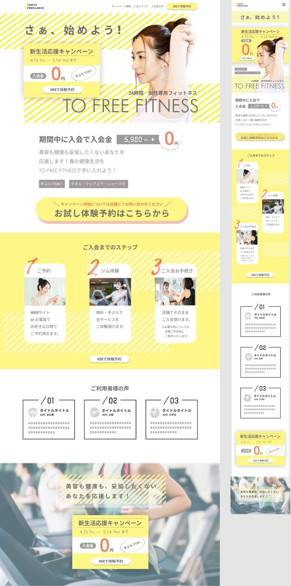 Rinさんがデイトラの課題で制作したスポーツジムのLPデザイン。