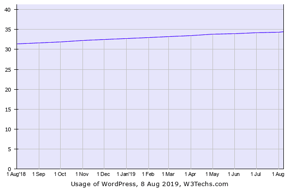 W3TecksというWebテクノロジーの調査団体によると、既存のインターネット上にあるWebサイトの内の30%以上がWordPressであることが公表されており、その割合はどんどんと増えていっています。