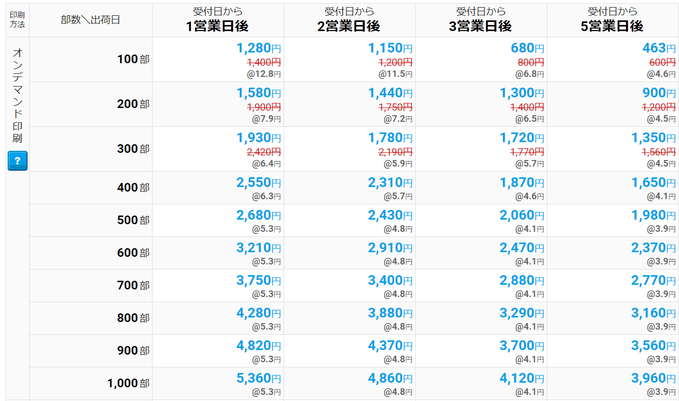 また、このように100部以上でもかなりリーズナブルに名刺の作成ができます。