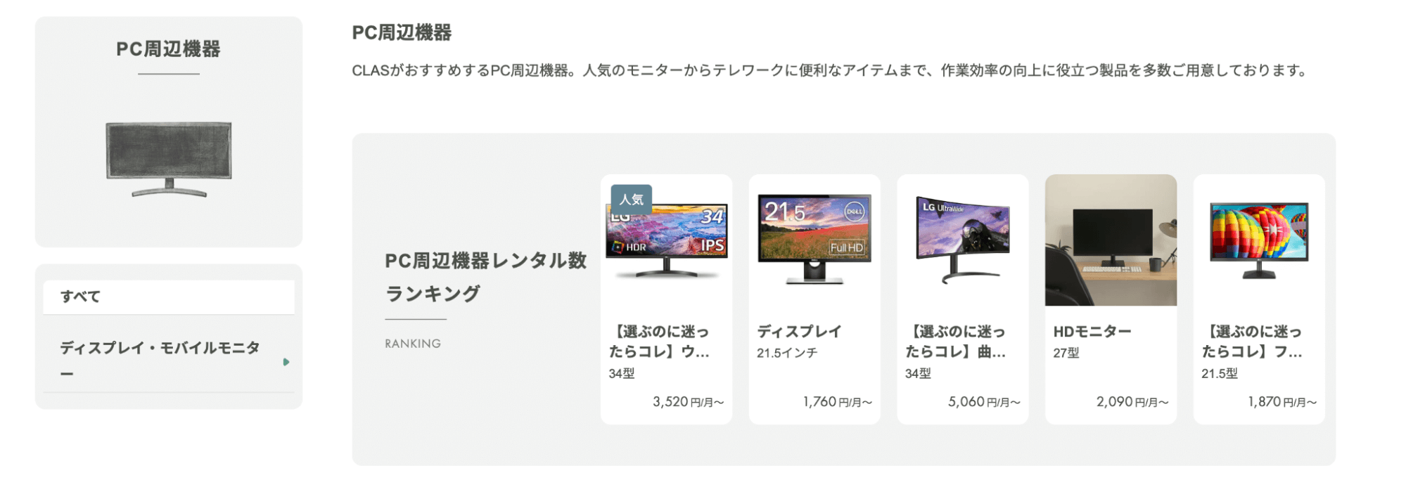 ↑CLASが提供する「PC周辺機器」のラインナップ