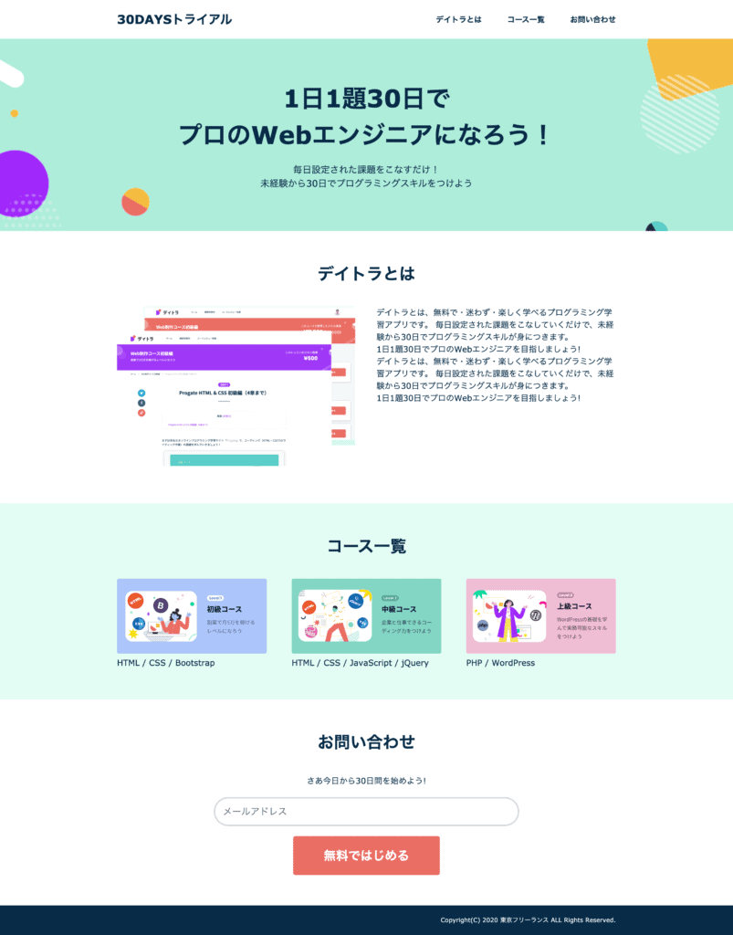 デイトラアプリの開発、Web制作コースの作成を行っている。