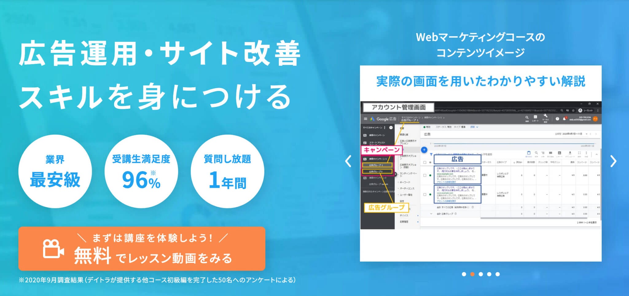 広告運用やサイトの改善スキルを手に入れたい方はぜひデイトラを受講してみてね!