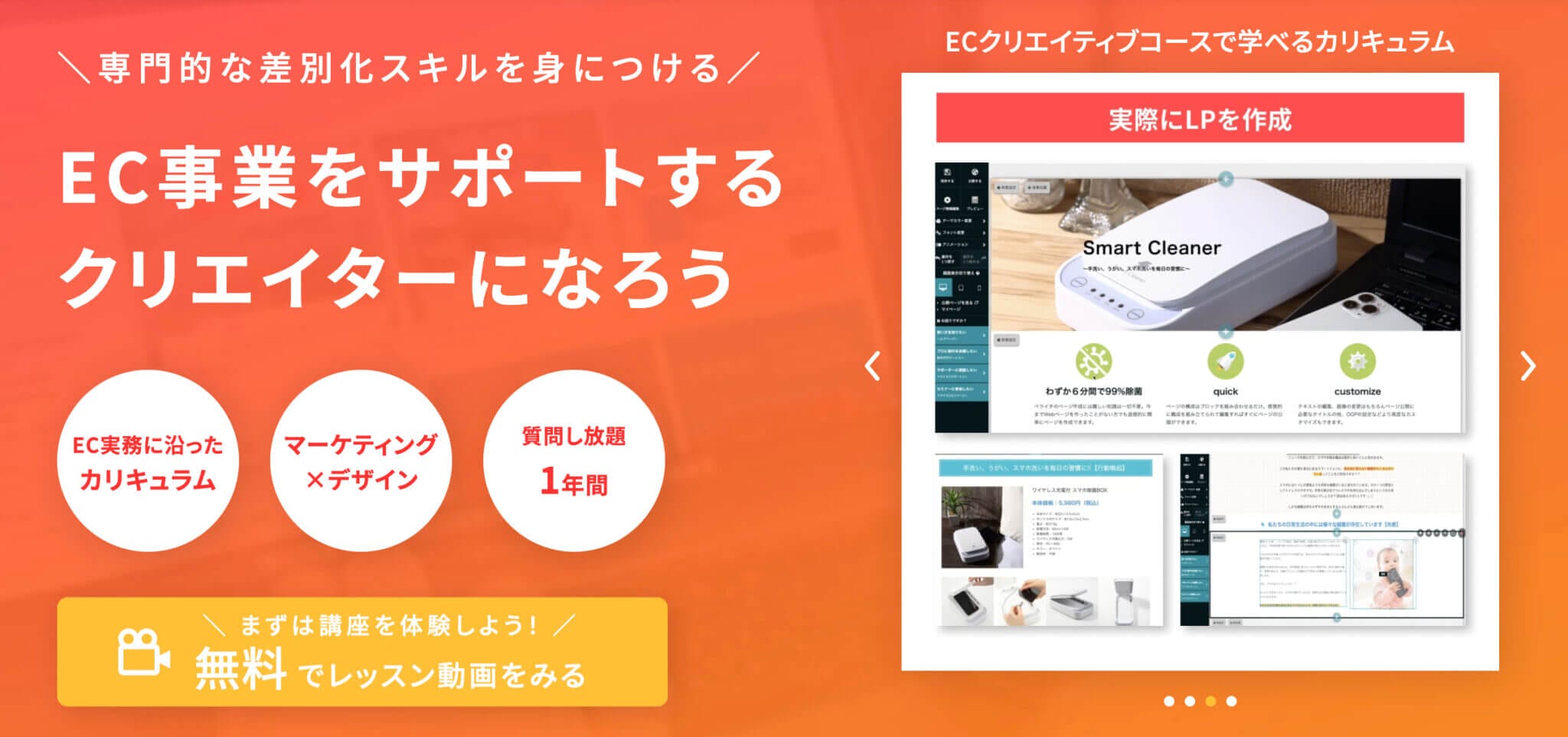 例えば、ECクリエイティブコースでは以下のような内容が学べます。
