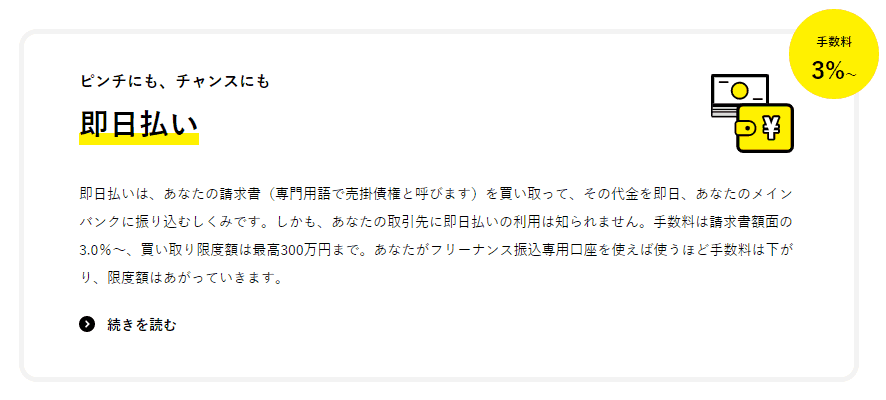 フリーナンス(FREENANCE)の三大サービス:収納代行・あんしん補償・即日払い