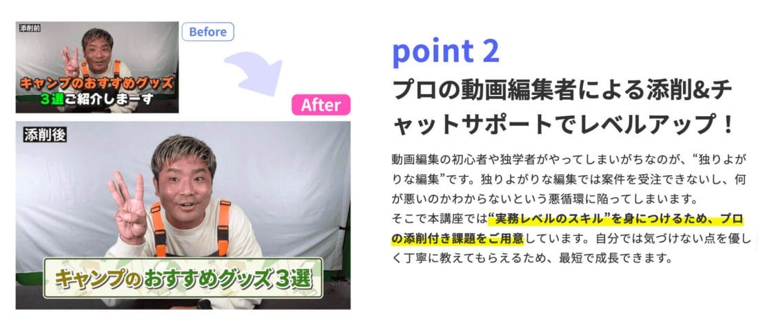 さらに、出来上がった動画を添削するだけでなく、動画作成の過程までチェックするようにして、「この編集の仕方だとミスにつながる可能性がありますよ」「もっと効率いい方法がありますよ」のようなアドバイスもするようにしています。
