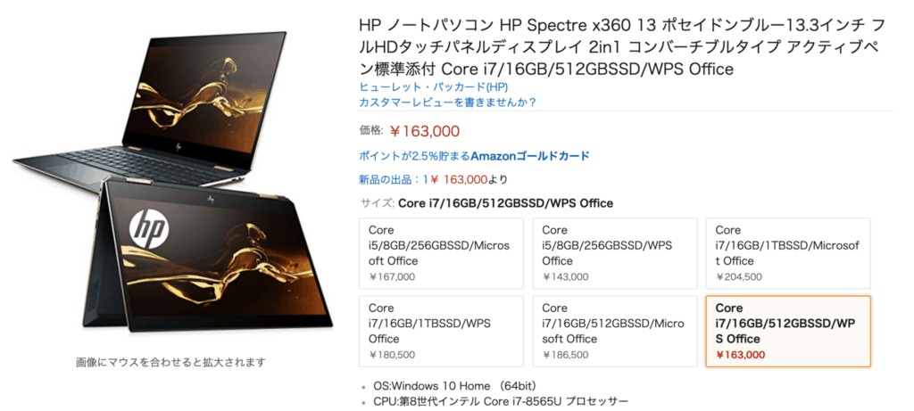 スペック面では、インテル Whiskey Lakeプロセッサと長寿命のバッテリ、ストレージにSSDを搭載しています。HP Spectre x360は、メインPCとして十分活用できるノートパソコンです。