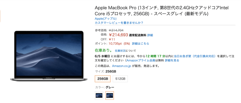 価格:メモリ8GB / Core i5 / 256GB SSD で¥
