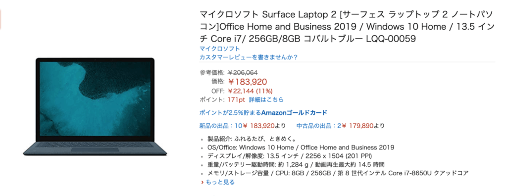 価格:メモリ8GB / Core i5 / 256GB SSD で¥214,693