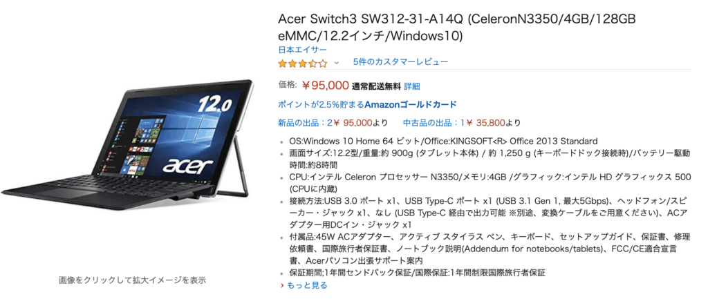 本当はMicrosoft Surface Book 2を使いたいけれど、そこまでのお金が工面できないなら、Acer Switch 3をお勧めします。実は、2017年に発売されたAcer Switch 3は、Surface Book 2と基本的に同じコンセプトで設計されているんです。