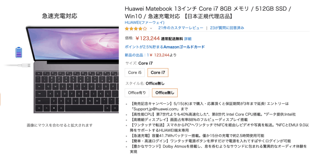 HuaweiのMateBook 13は、軽量でコンパクト、高スペックでエレガントなデザインのノートパソコンです。しかも、競合モデルと比べると、かなりの低価格で販売されています。高コスパで素晴らしいノートパソコンですが、性能と価格を実現するために、バッテリー寿命を若干犠牲にしているようです。