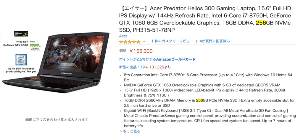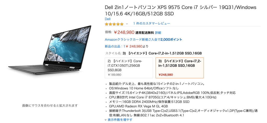 価格:メモリ16GB / Core i7 / 256GB SSD + HDD 1TB で