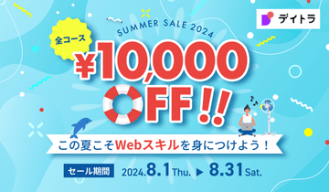 当メディアを運営する株式会社デイトラでは、未経験でも・迷わず・楽しくWebスキルが学べるオンラインスクールを開講しており2023年7月現在全16種類のコースがあります。