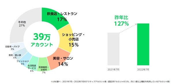 今や飲食店や小売店をはじめ様々な店舗や企業がLINEを活用するようになり、2022年時点で39万ものLINE公式アカウントが生まれているというデータが出ているんです。