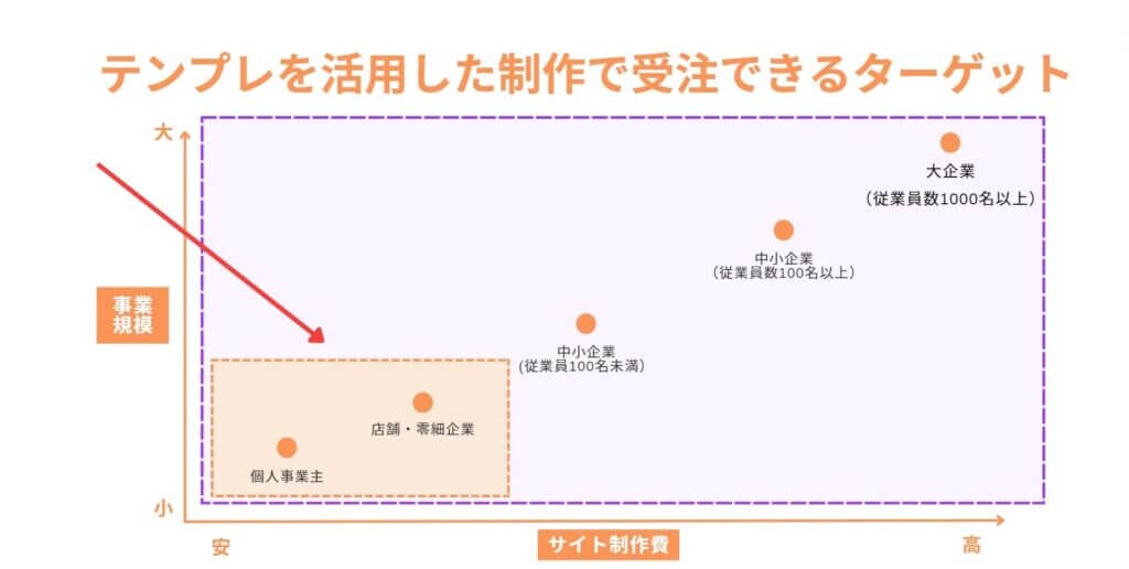 そのため、営業時にも「複雑な機能や細かすぎる実装はできないが、見栄えの良いサイトを素早く低コストで制作します」というメリットをアピールする機会が多くなるでしょう。
