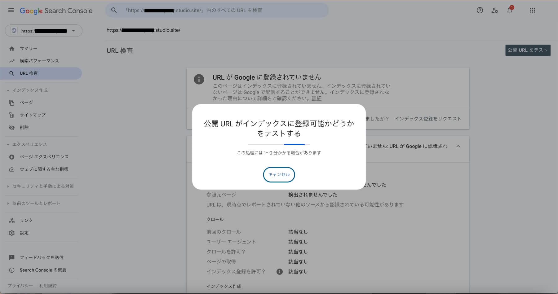 URLがインデックスに登録可能かどうかのテストがスタートします。