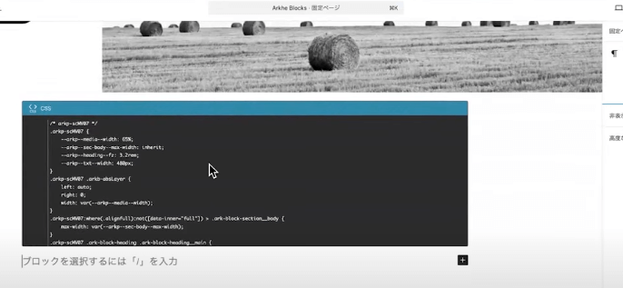 特徴的なのは、パターンを貼り付けると、そのスタイルを調整するためのCSSも一緒に表示される点です。