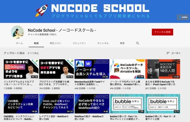 まさにこれからNoCodeを本格的に学んでいこうと考えている方にピッタリなので、是非チャンネル登録してみてください!