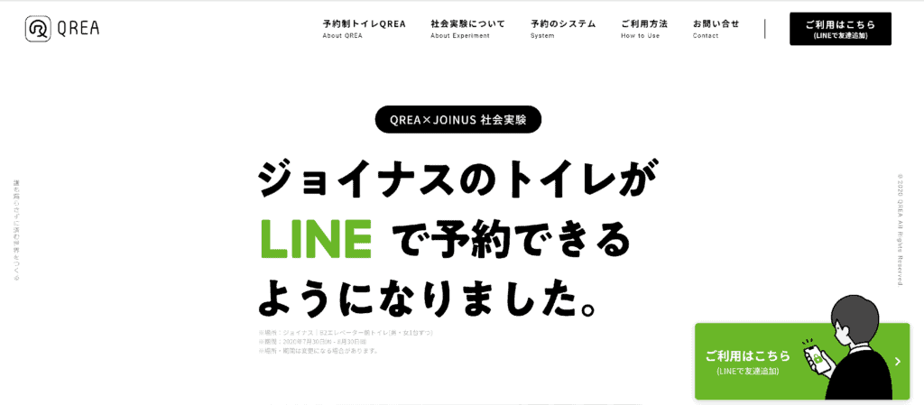 LINEでQREAを友達追加するだけで空いているトイレを検索し、予約できる。