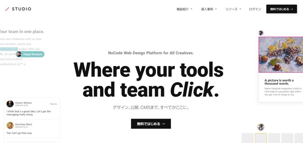 なのでSTUDIOのポテンシャルを引き出すにはデザインスキルや知識があることが前提になります。