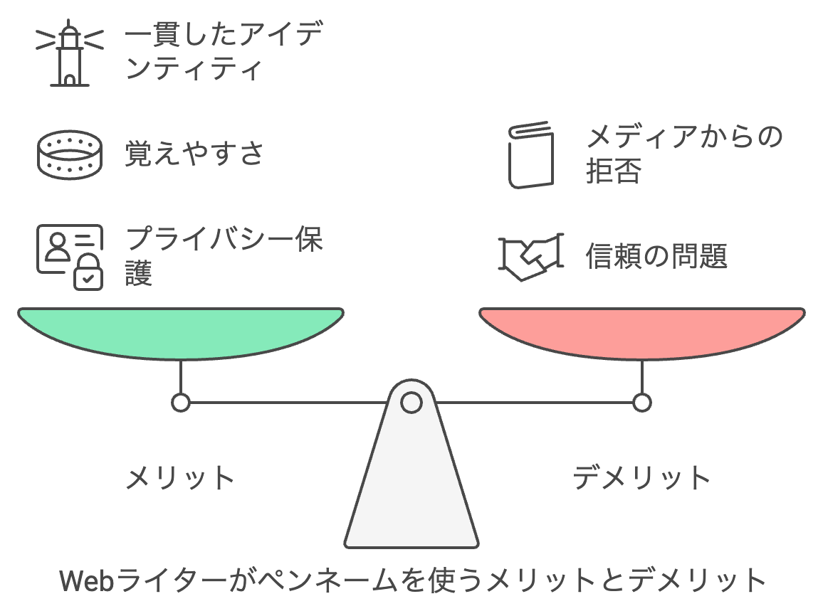 ペンネームを使用することで、読者やクライアントからの信頼を得にくくなることがあります。