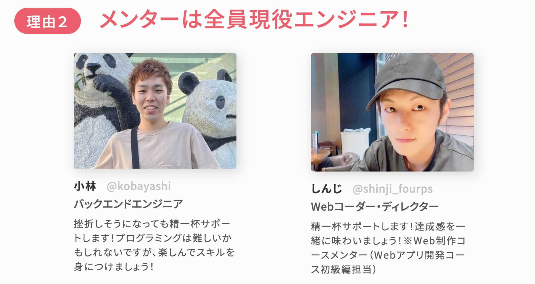 デイトラWebアプリ開発コースのメンターは全員現役エンジニアです。
